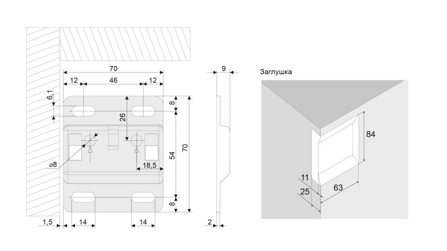 •Для монтажа за задней стенкой
