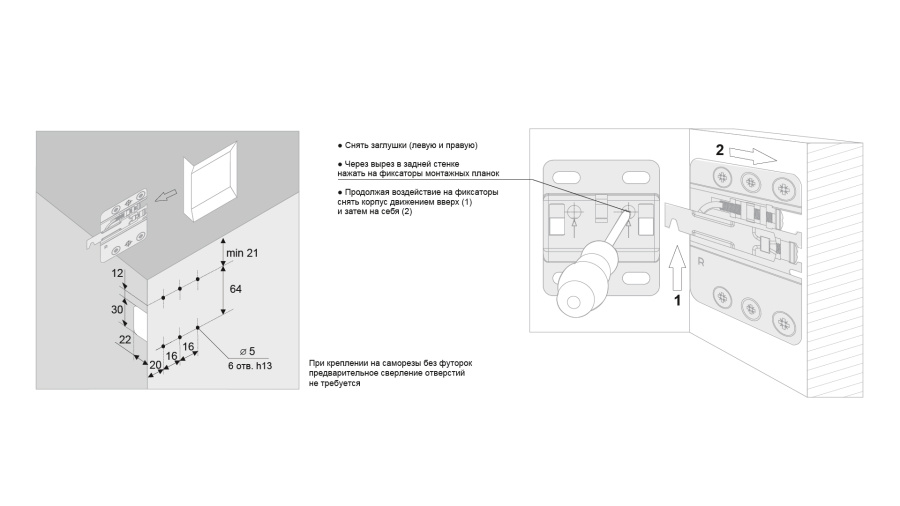 •Требуется ОБЯЗАТЕЛЬНОЕ вкручивание в боковину корпуса.